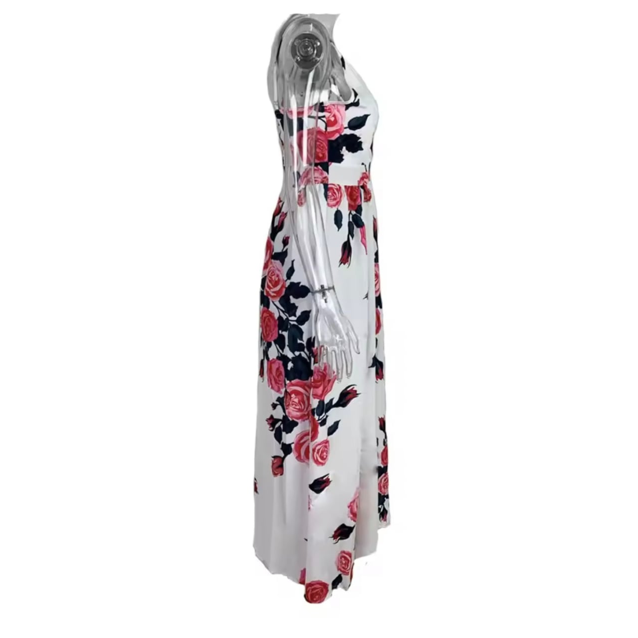 エレガンスと魅力を纏う、薔薇柄のマキシドレス Vネックパーティー ビッグスカート スイングドレスです!