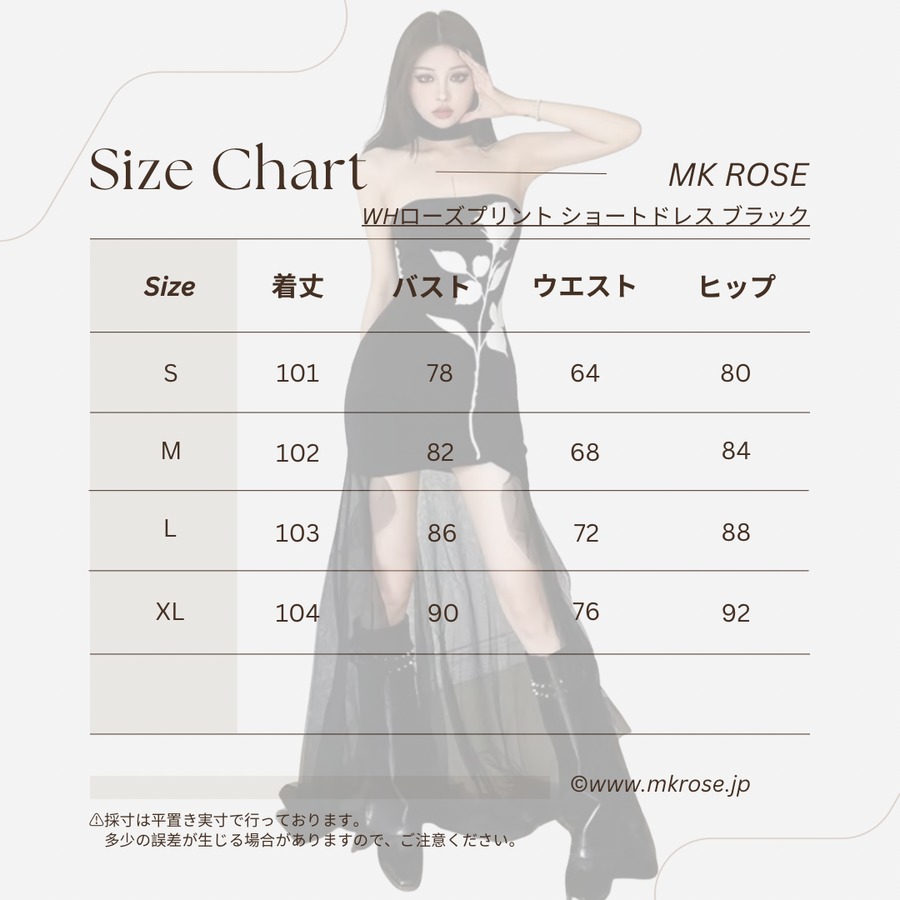 エレガンスと可憐さを纏った、「ホワイトローズプリント ショートドレス ブラック チューブトップ スリム」です!
