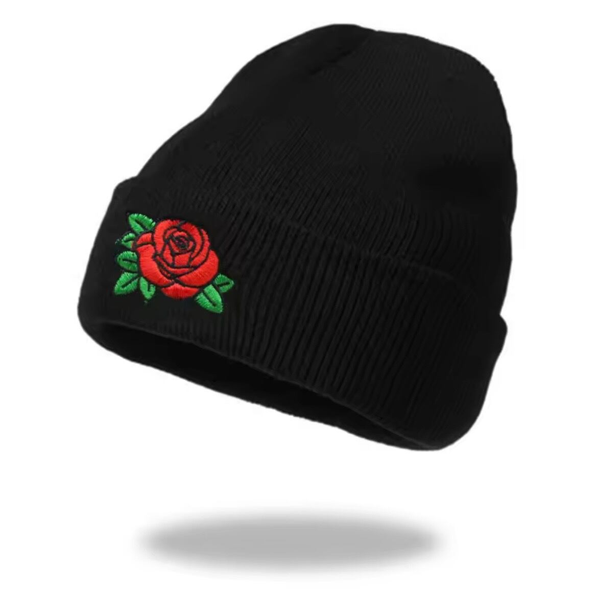あなたの冬のスタイルに華やかさと温もりを加える、この薔薇刺繍ロゴ ニット帽子をぜひお楽しみください!