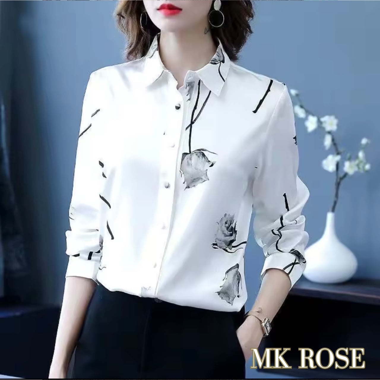 『美しい薔薇デザインが映える、ハイエンドなブラウス』