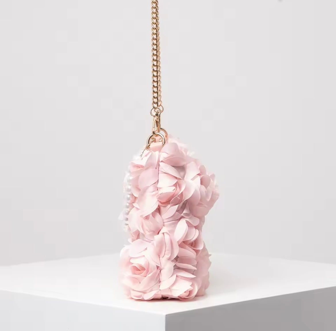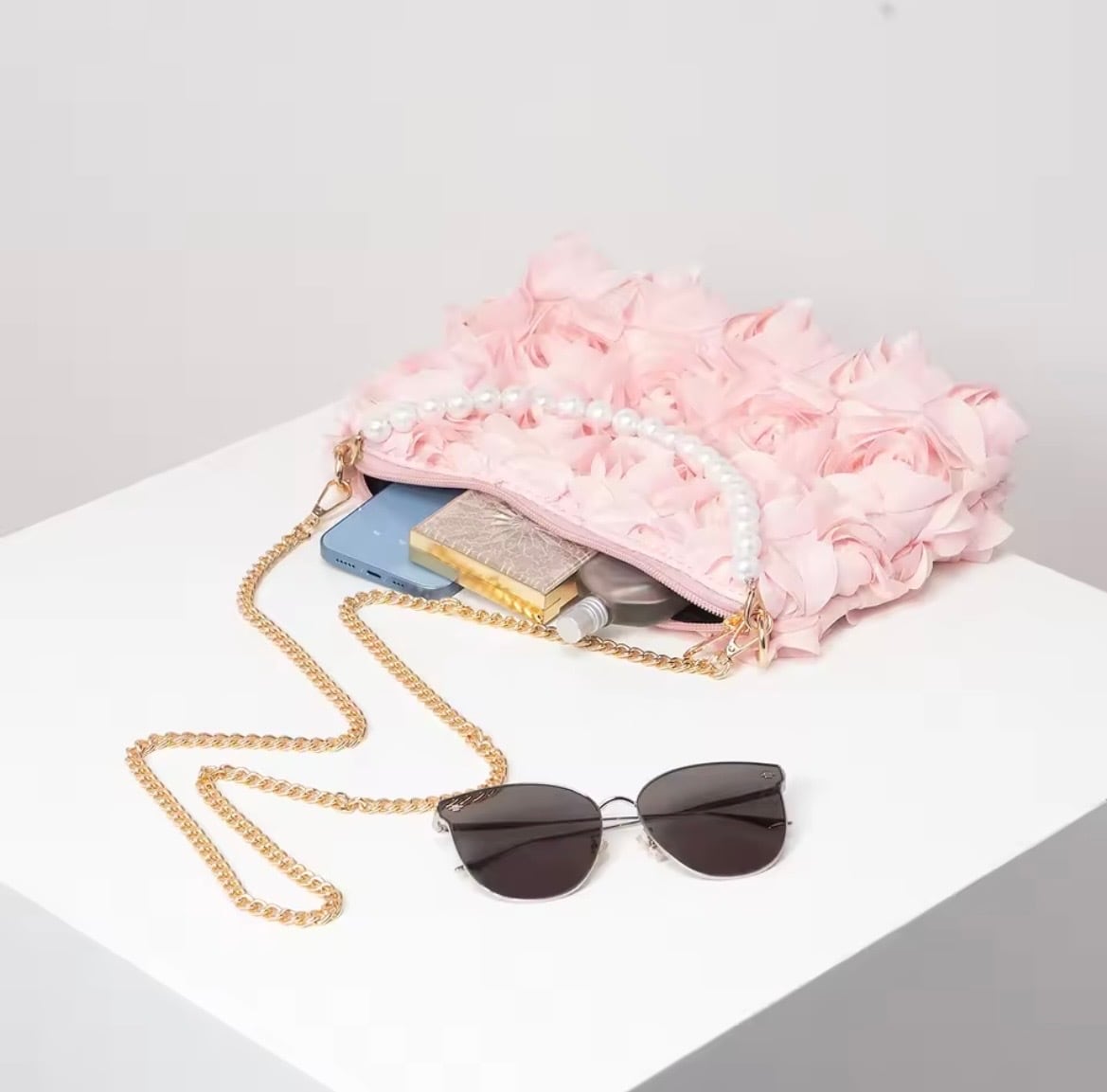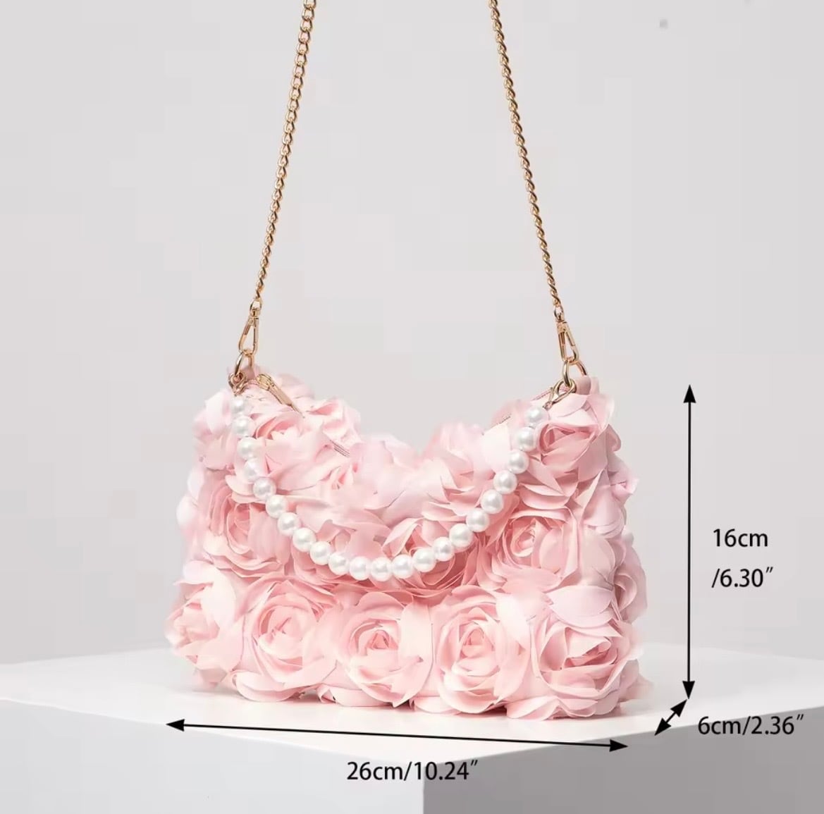 あなたのファッションにエレガンスと華やかさを加える、このピンクローズ フラワー ショルダーバッグをぜひお楽しみください!